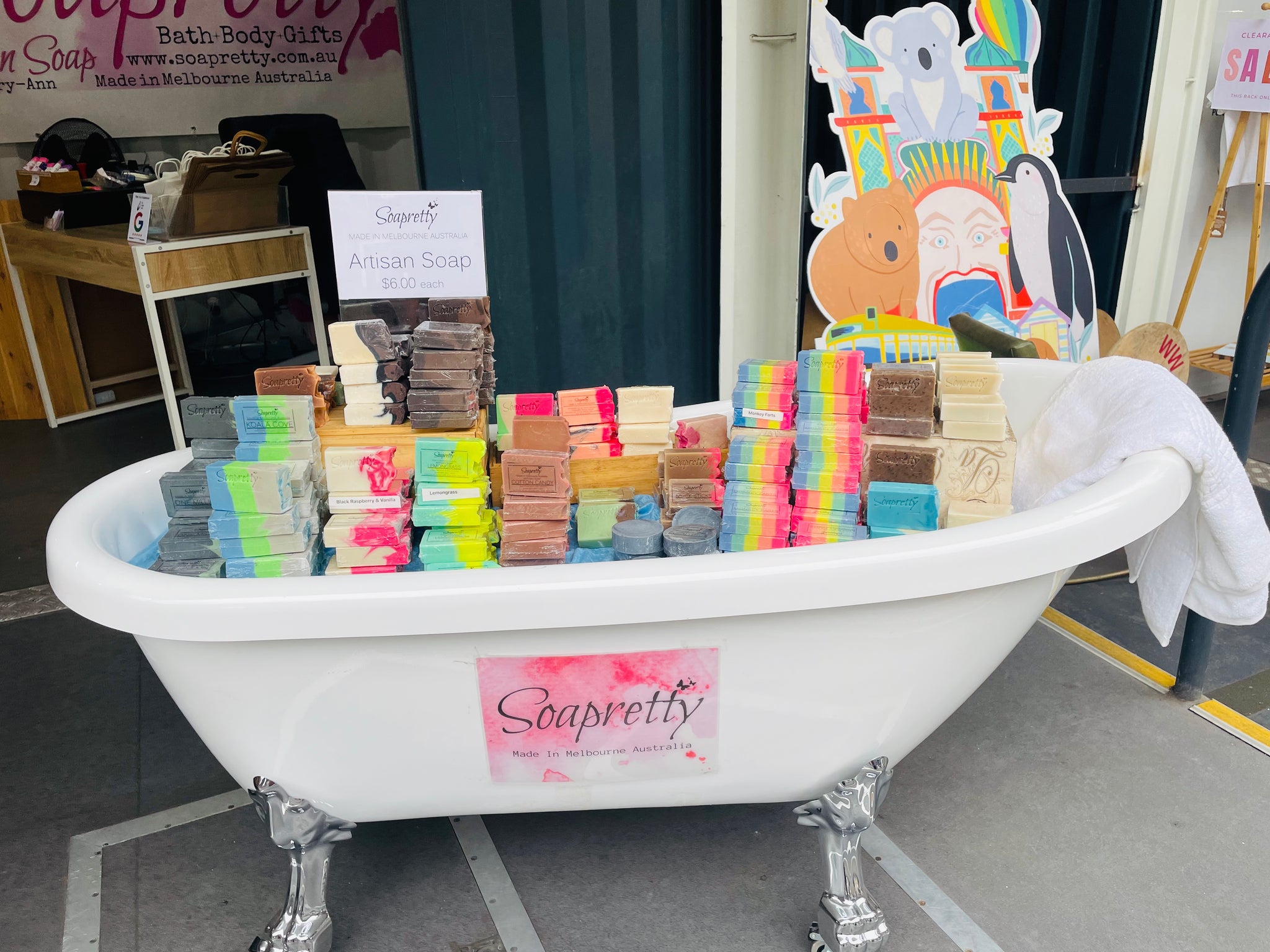 Ingredients: Saponified oils of Olive, Coconut & Certified Sustainable Palm, Cocoa butter, Shea butter, Castor Oil, Glycerin which forms in the soap when it is made, Fragrance oil, Mica